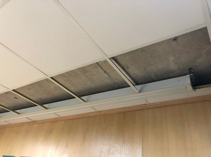 Màn chiếu âm trần có cấu tạo lớp PVC trắng làm nền và lớp PVC đen giúp giảm ánh sáng phía sau màn chiếu.