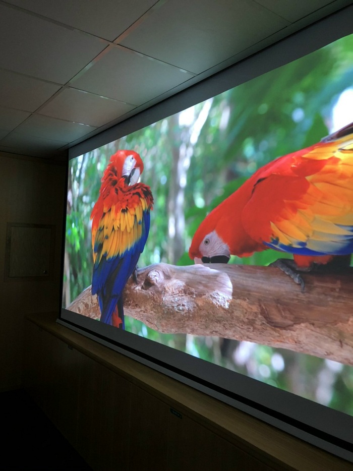 Bề mặt ngoài được phun sơn trắng đục và tráng bóng với lớp dầu điều, do vậy mà màu sắc thích hợp với mọi không gian ánh sáng, tạo cho người dùng cảm giác thật sự của hình ảnh xem phim.
