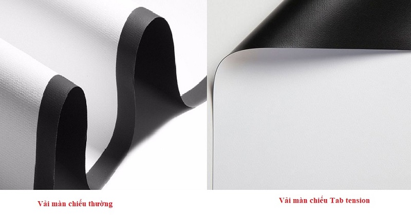 Chất liệu vải màn: Sợi vải tổng hợp PVC dẻo được nhập từ nước ngoài, chất liệu PVC theo công nghệ cao vì vậy đảm bảo được độ " Sâu" của phim 3D, HD và Full HD, 4K, và một điều quan trọng là tăng độ nét của hình ảnh sẽ đảm bảo được việc bóng đèn máy chiếu có tuổi thọ lâu hơn.