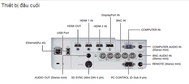 RGB (tương tự): Đầu vào: 1 x 5BNC, được chia sẻ với Tín hiệu Hợp phần (YPbPr); 1 x Mini D-sub 15-pin, tương thích với thành phần (YPbPr)